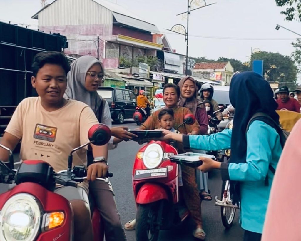 Bagi-bagi takjil menu makanan bergizi ke pengguna jalan raya Soekarno Hatta