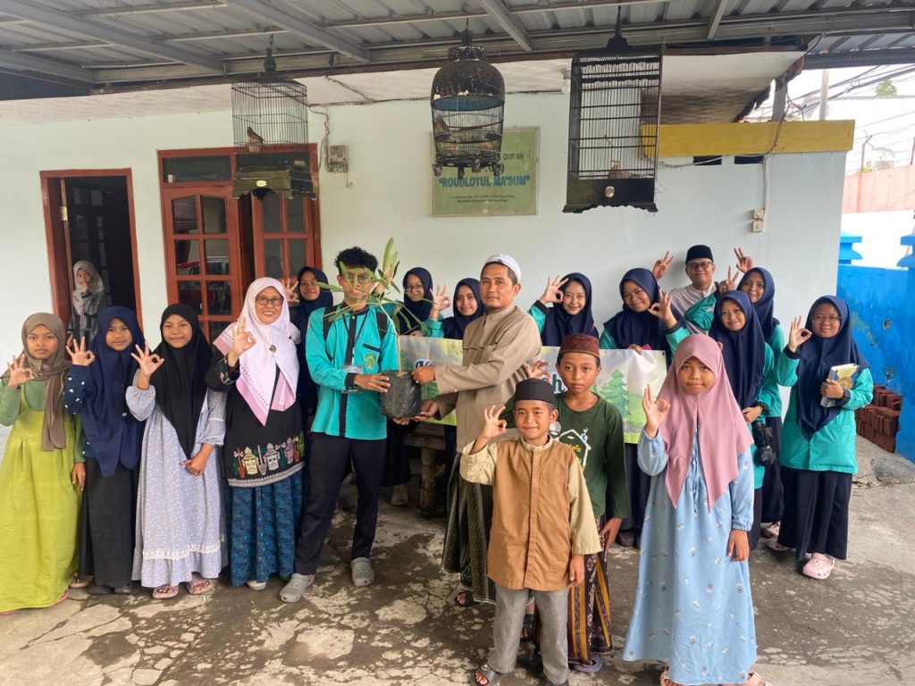 Penyerahan bibit pohon Tabebeuya dari Siswa MAN 2 Kota Prob ke Pengasuh Mushola Roudlotul Ma’sum