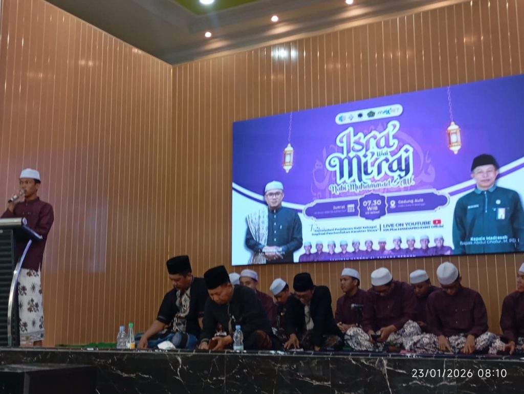 MandaProExist – Madrasah Aliyah Negeri (MAN) 2 Kota Probolinggo menggelar peringatan Isra Mi’raj Nabi Muhammad SAW pada Jumat (23/01). Kegiatan yang berlangsung khidmat di Gedung Aula MAN 2 Kota Probolinggo ini dihadiri oleh seluruh civitas akademika dan para siswa.