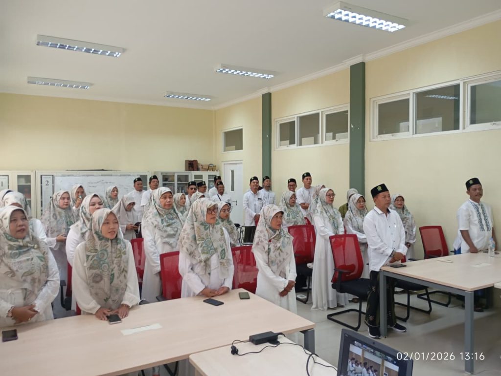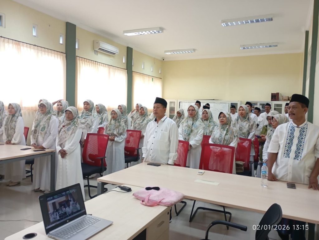Kegiatan yang berlangsung pada hari Jumat, 02 Januari 2026 ini diikuti oleh jajaran pimpinan, guru, serta pegawai dan staff TU dengan suasana yang penuh kekhusyukan. Meski dilaksanakan secara virtual, semangat spiritualitas tetap terasa kental di dalam ruangan.