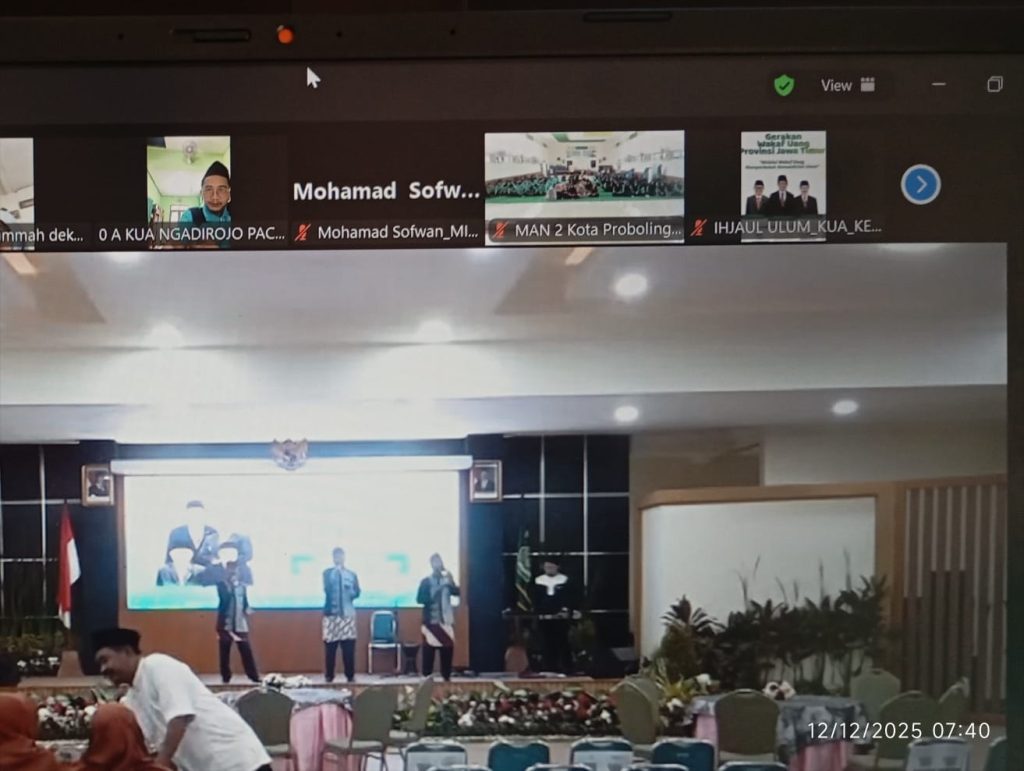 MandaProExist-Euforia menyambut Hari Amal Bakti (HAB) Kementerian Agama ke-80 mulai terasa di lingkungan madrasah. Bertempat di Aula madrasah, segenap Guru, Staf Tata Usaha (TU), dan perwakilan siswa MAN 2 Kota Probolinggo berkumpul untuk mengikuti Kick Off HAB ke-80 sekaligus Launching Program Wakaf Uang yang diselenggarakan oleh Kantor Wilayah Kementerian Agama (Kanwil Kemenag) Provinsi Jawa Timur secara daring, Jumat (12/12/2025).