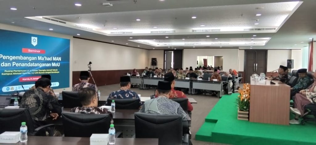 Kegiatan bertajuk “Seminar Pengembangan Ma’had di MAN dan Penandatanganan MoU” ini diselenggarakan di Ruang Pertemuan Lt. 9 Tower Teungku Ismail Yakub, Kampus UIN Sunan Ampel. Acara ini menjadi momentum krusial bagi 38 Madrasah Aliyah Negeri di Jawa Timur yang terpilih untuk memperkuat jejaring akademis dan manajerial ma’had.